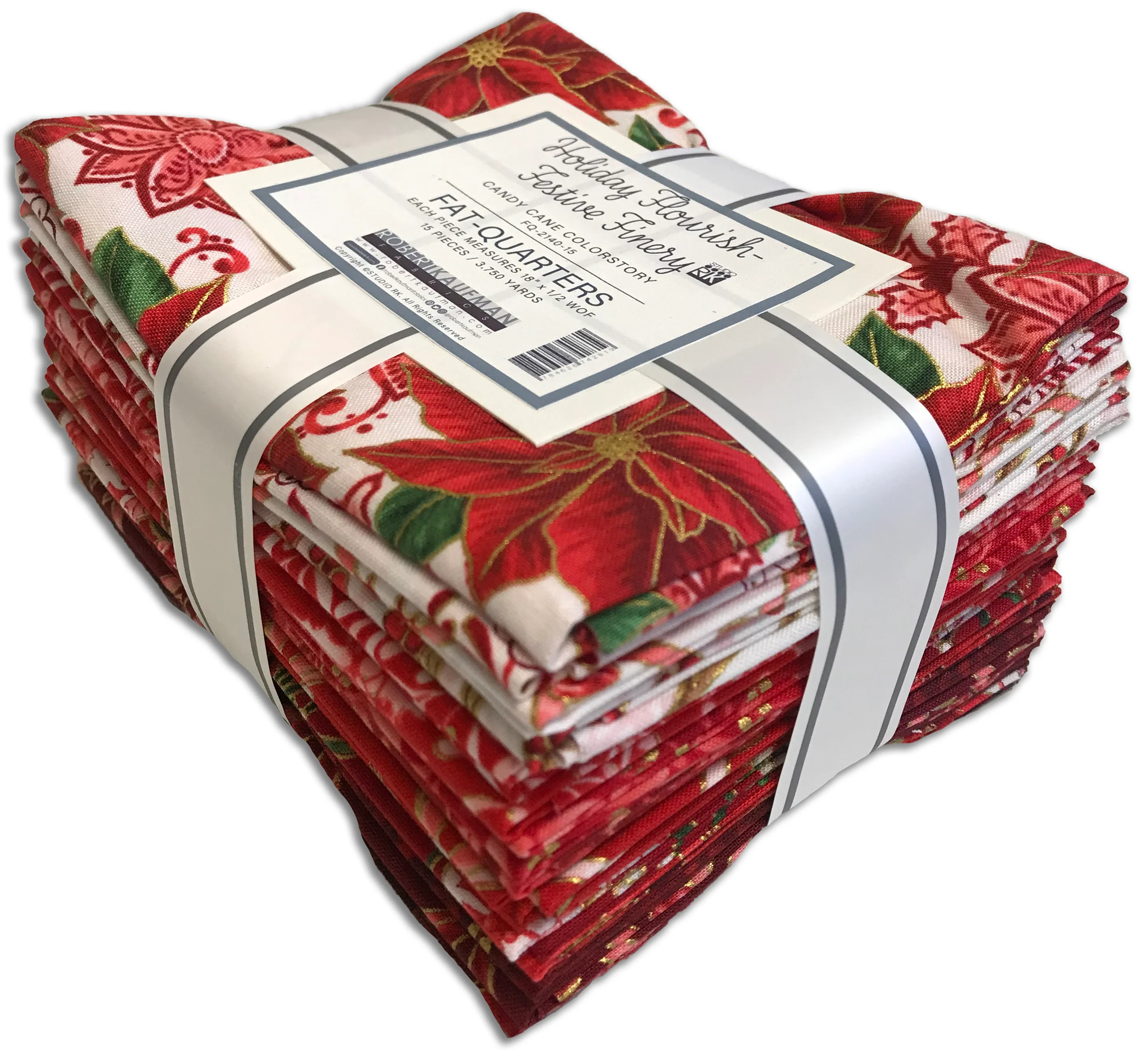 Kaufman Pre-Cuts 15 Piece Fat Quarter Bundle - 2140 15 - Holiday Flourish: Festive Finery - CANDY CANE