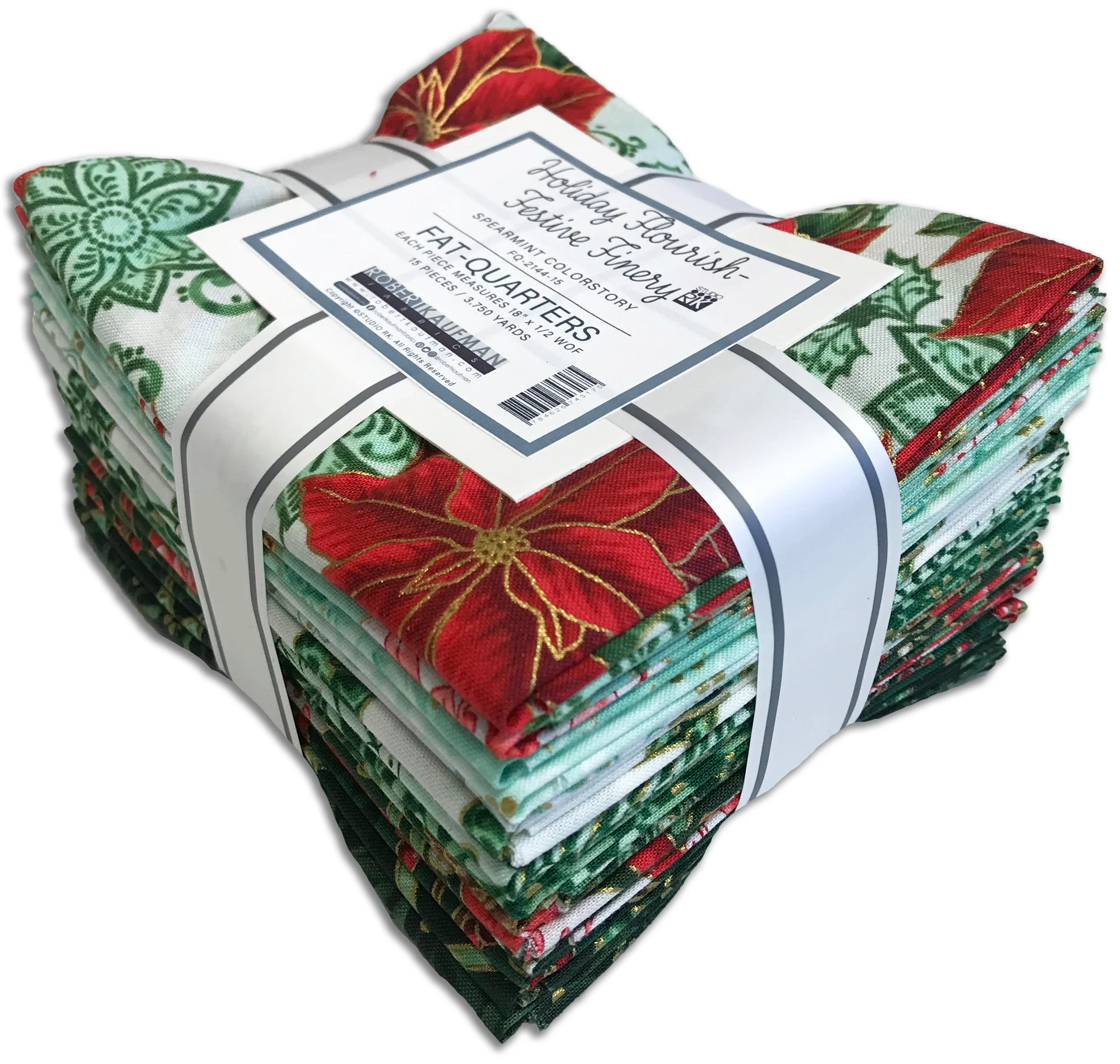 Kaufman Pre-Cuts 15 Piece Fat Quarter Bundle - 2144 15 - Holiday Flourish: Festive Finery - SPEARMINT